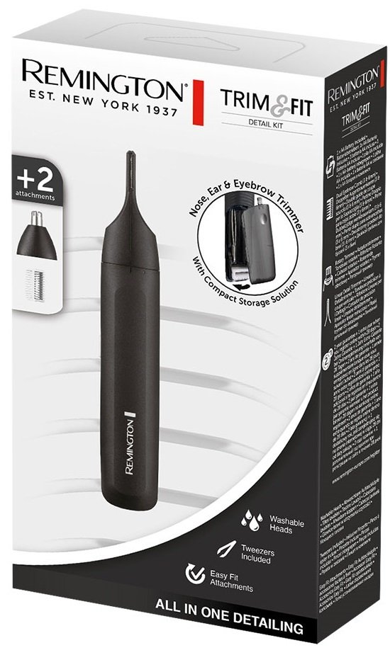 Триммер Remington Trim & Fit NE8000 имеет все необходимое для ухода за волосами на лице. Модель точная и идеально подходит для подравнивания бровей, создания тонких деталей в труднодоступных местах. Роторная насадка справляется с нежелательными волосами в носу и ушах, а удобный пинцет — с надоедливыми волосками. комплектация- Триммер