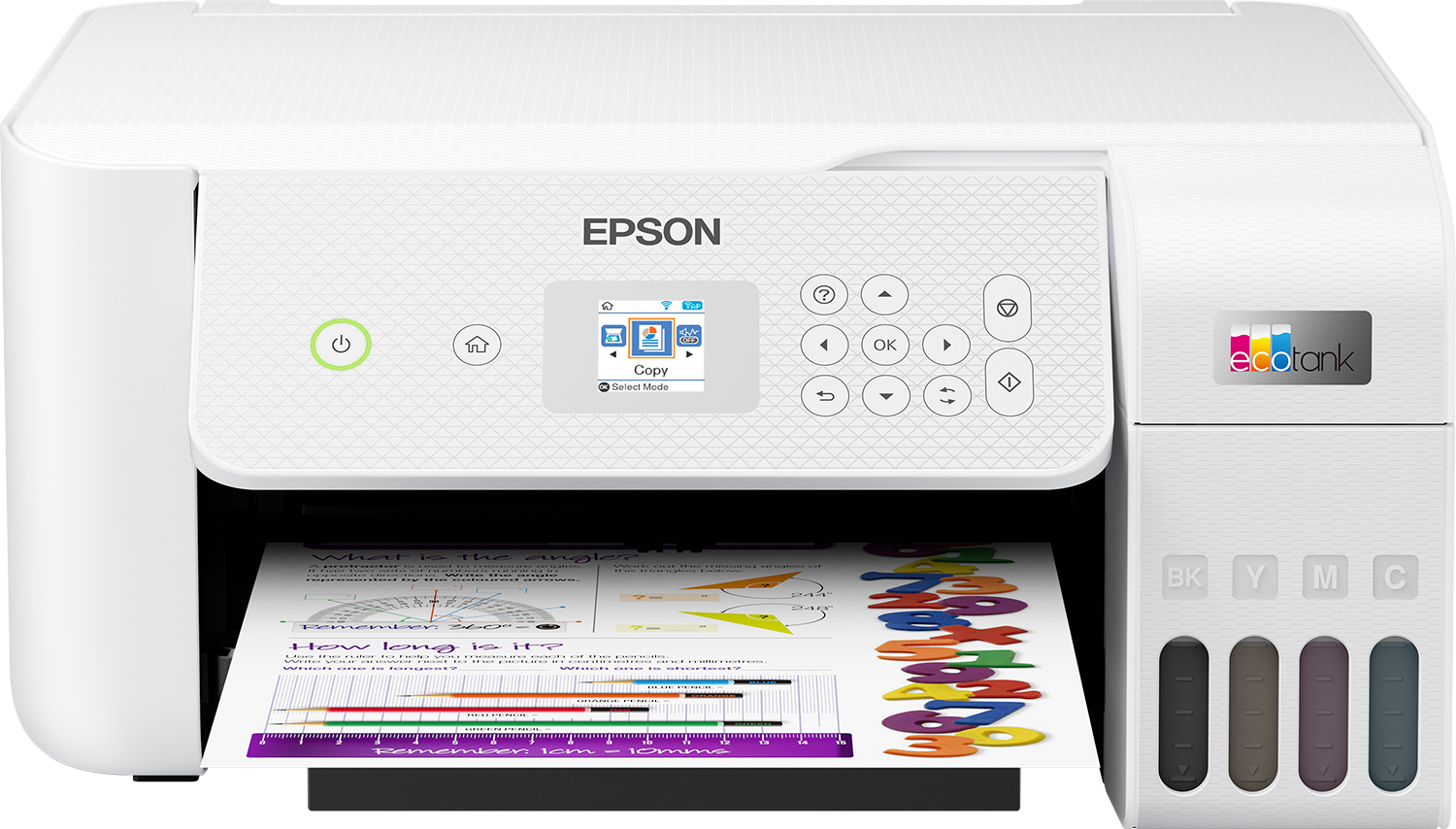 Благодаря отсутствию необходимости в замене картриджей это многофункциональное устройство (печать, сканирование, копирование) в белом корпусе с Wi-Fi Direct и ЖК-экраном подходит для тех, кто ищет высококачественные принтеры по невероятно низкой цене за страницу. С помощью 100-листового заднего лотка для бумаги, печати фотографий без полей (до 10 x 15 см) и скорости печати до 10 страниц в минуту¹ вы с легкостью сможете выполнять различные задачи.